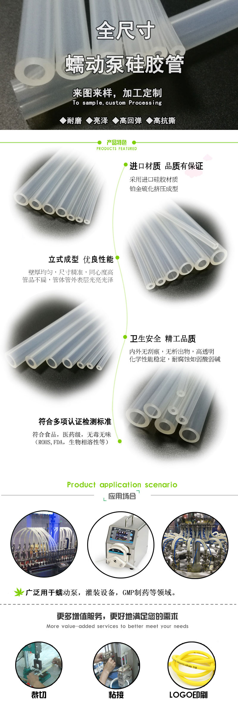 本公司通過ISO9001體系,生產(chǎn)鉑金硅膠管,蠕動泵硅膠管,食品醫(yī)療模壓硅膠成型件及硅橡塑制品密封組件定制生產(chǎn)等。以“研制更好的產(chǎn)品,提供更好的服務(wù),創(chuàng)建更好的形象”三個更好作為競爭策略,不斷進(jìn)行變革和管理創(chuàng)新,增強(qiáng)企業(yè)綜合競爭力。